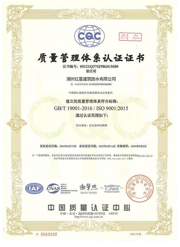 質(zhì)量管理認(rèn)證證書