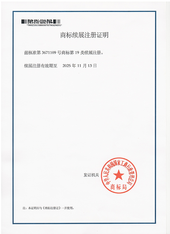 新永固 續(xù)展證明