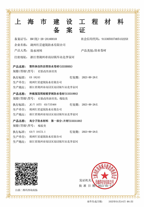 上海卷材備案證