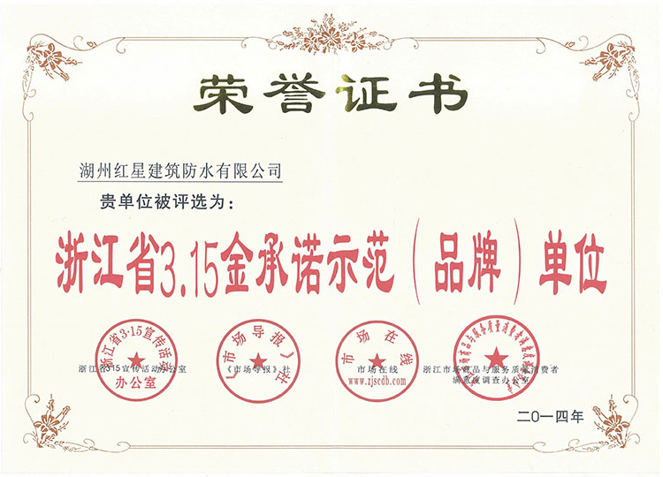 浙江省3.15金承諾示范(品牌)單位